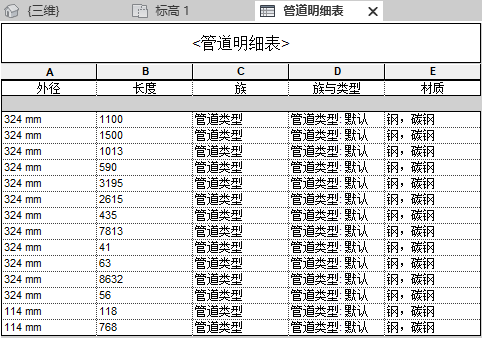 精准算量,减少浪费:BIM模型可自动生成材料明细表,精确计算管道数量、尺寸及规格,避免人工算量误差。设计变更时,明细表自动同步更新,避免信息滞后。